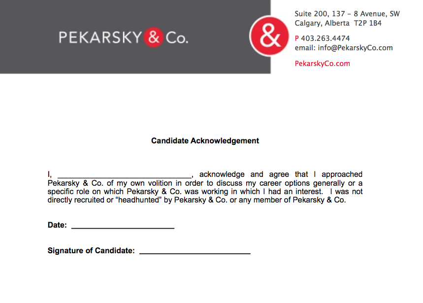 For this reason, whenever we source a contact at a client we have to be extremely careful and clear as to our intentions. Firstly, we make it very clear that our call is a confidential enquiry (more on that later). Second, we state expressly that we are not recruiting him or her, for he or she is a member of a client organization. Third, we are the only firm to use a Candidate Acknowledgement Form to cover ourselves when, as occasionally happens, someone from a client firm pays us a visit in search of a change. Still, we get our hand slapped.