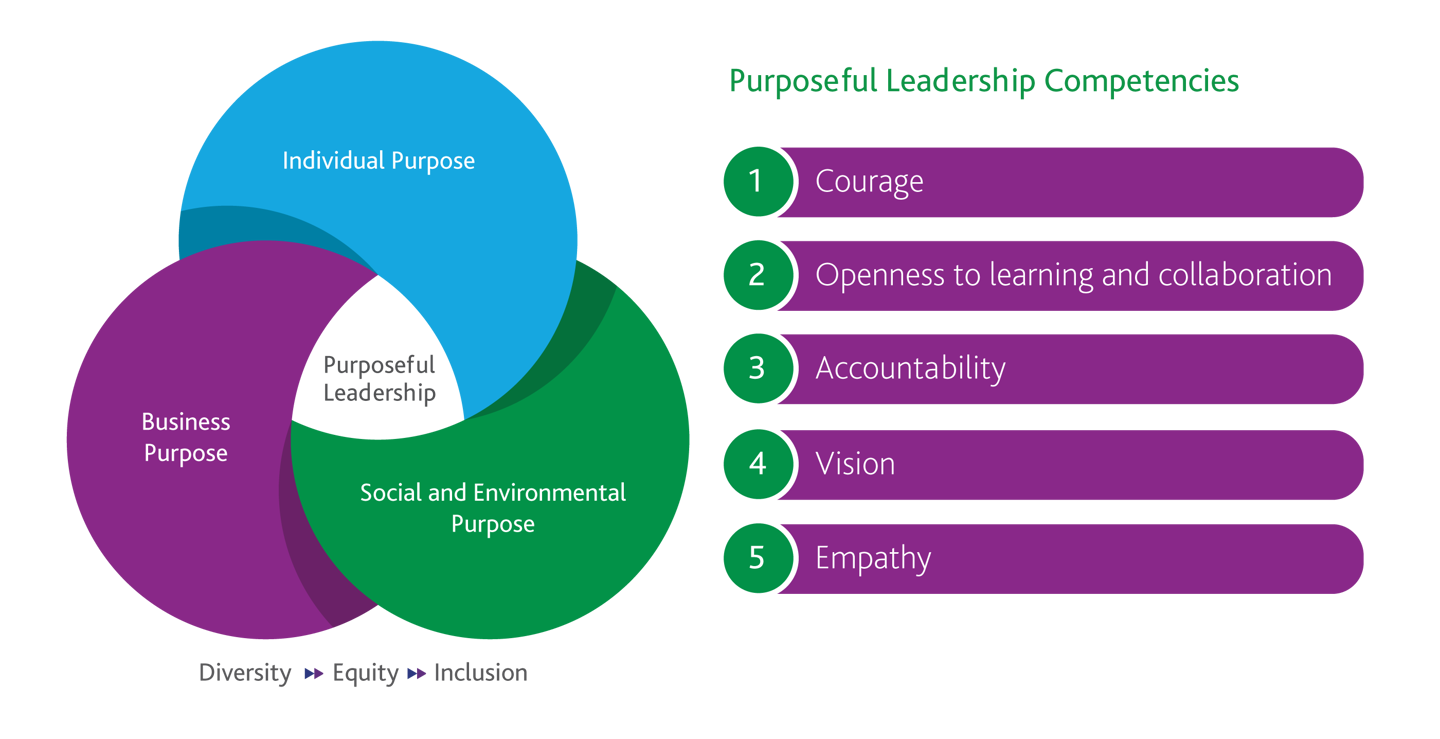 Our Purposeful Leadership model drives impact and long-term value creation for people, the planet, and profits all while including the practice of embedding diversity, equity, and inclusion into every element of the business.
