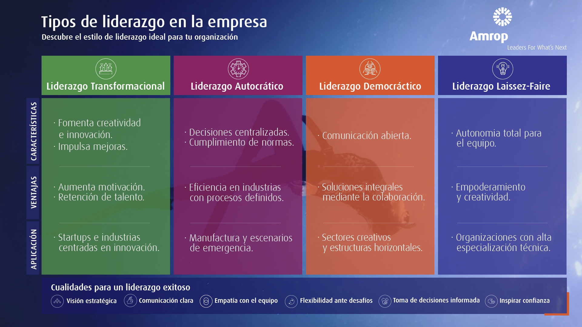 En este artículo exploraremos los principales tipos de liderazgo, cómo identificarlos, cuándo aplicarlos y cómo Amrop España puede ser un aliado estratégico en la búsqueda y desarrollo de líderes empresariales que impulsen el rendimiento corporativo.